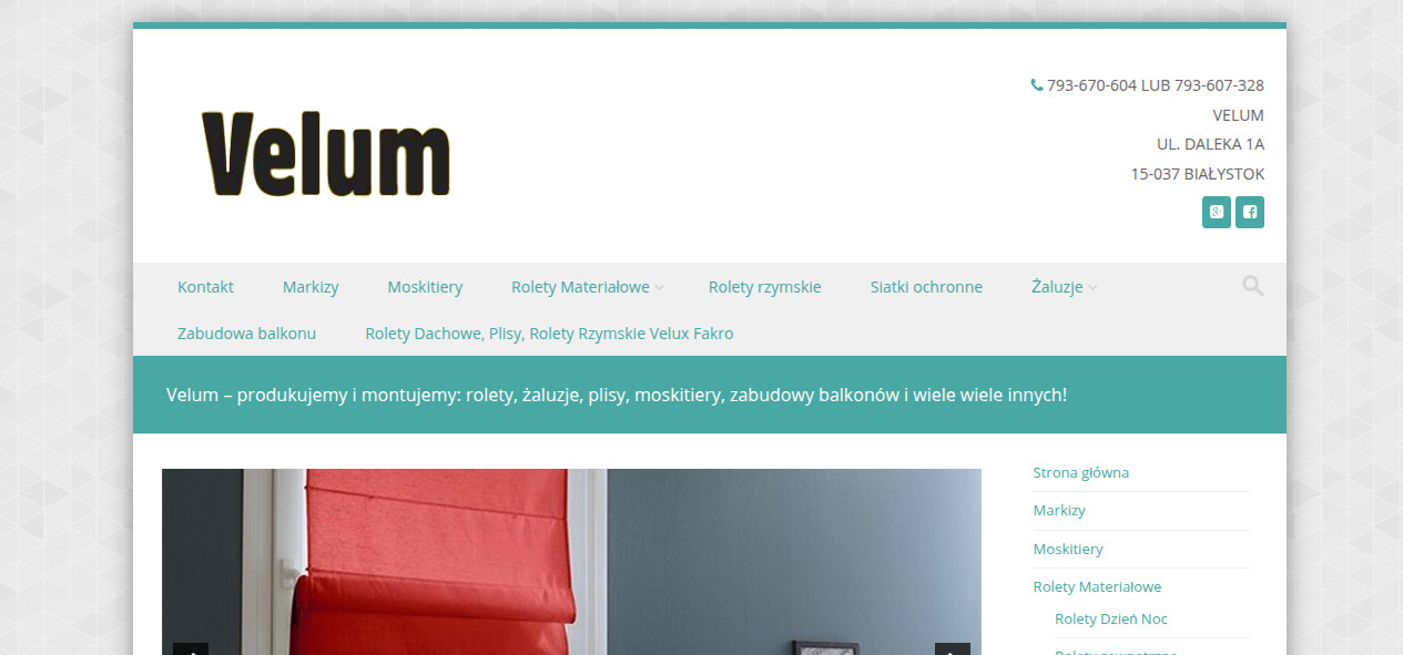 Velum z Białegostoku specjalizuje się w produkcji i montażu osłon okiennych, oferując rolety, żaluzje, plisy, moskitiery i zabudowy balkonów. Bezpłatne